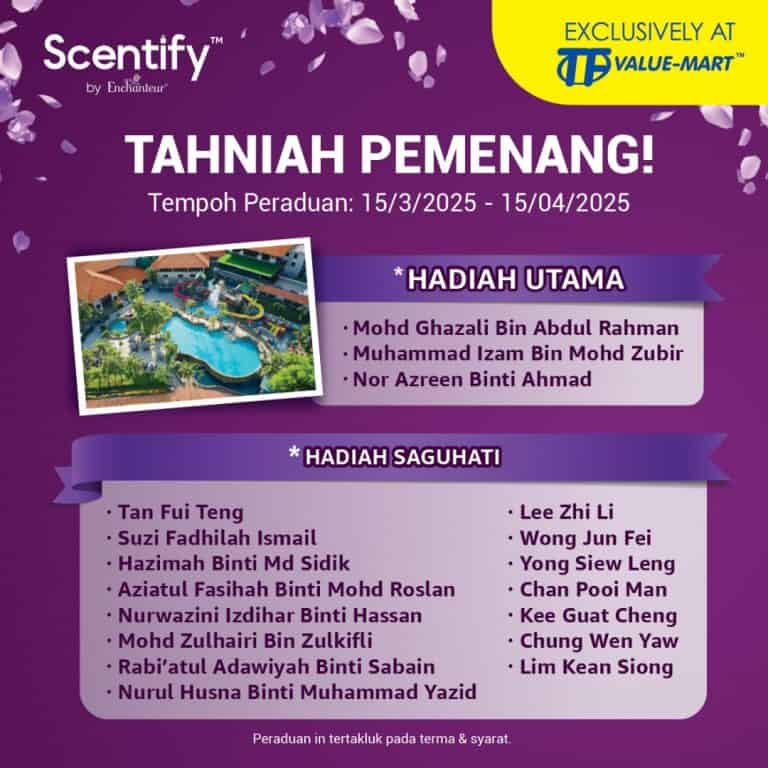 Pengumuman Pemenang Peraduan Bersama Scentify (15 Mac – 15 Apr 2025)