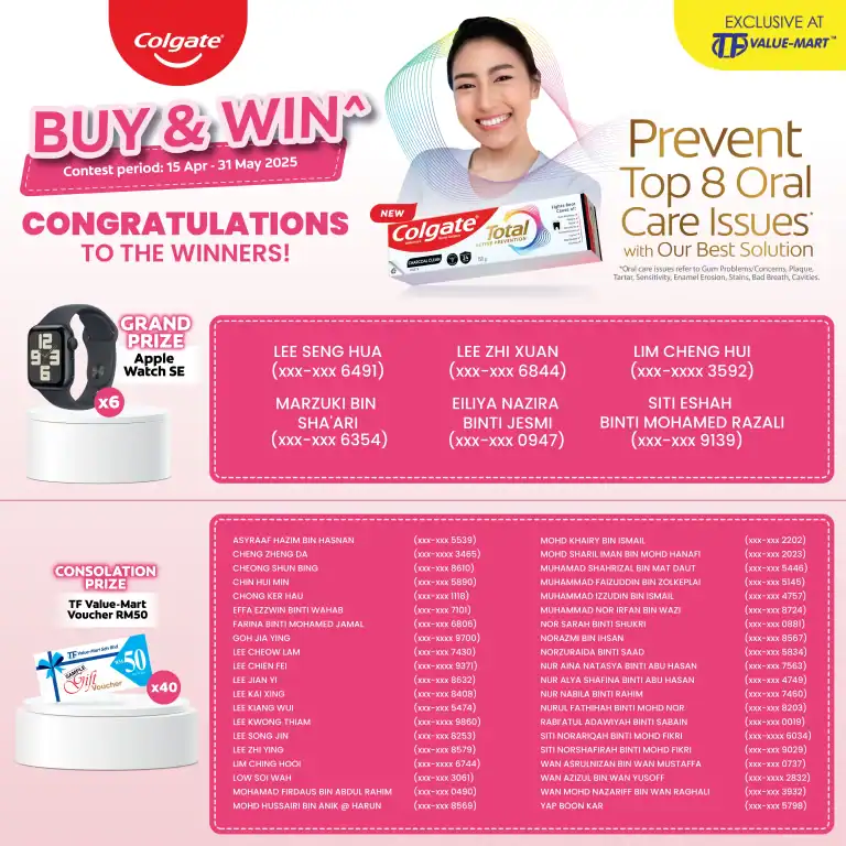Tahniah kepada pemenang-pemenang Peraduan Colgate Buy & Win
